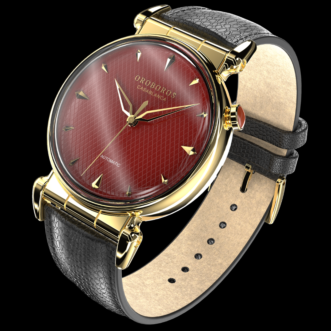 Casablanca is a stunning timepiece, designed for those who appreciate the finer things in life. With its modern and unique case design, a double domed sapphire crystal, and a sleek snakeskin patterned dial; this watch is sure to turn heads and make a bold statement on your wrist. Casablanca is offered in chic black or white for a more subtle look, or for the bold, a vibrant sunray red. Crafted from premium materials, Casablanca features a premium leather band which offers comfort, durability and style, making it the perfect accessory for any outfit. So, wherever your travels take you, this watch is a timeless tribute to the beauty and sophistication of the city of Casablanca.