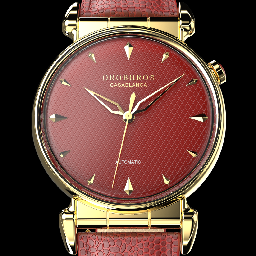 Casablanca is a stunning timepiece, designed for those who appreciate the finer things in life. With its modern and unique case design, a double domed sapphire crystal, and a sleek snakeskin patterned dial; this watch is sure to turn heads and make a bold statement on your wrist. Casablanca is offered in chic black or white for a more subtle look, or for the bold, a vibrant sunray red. Crafted from premium materials, Casablanca features a premium leather band which offers comfort, durability and style, making it the perfect accessory for any outfit. So, wherever your travels take you, this watch is a timeless tribute to the beauty and sophistication of the city of Casablanca.