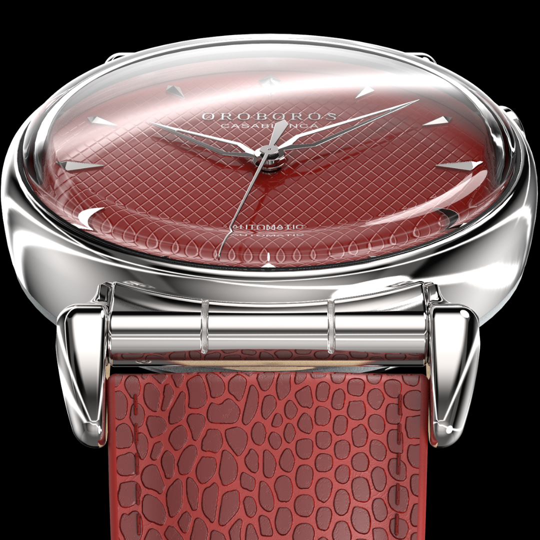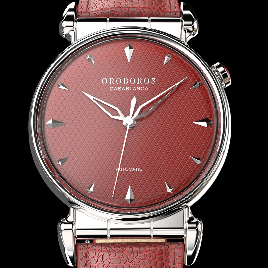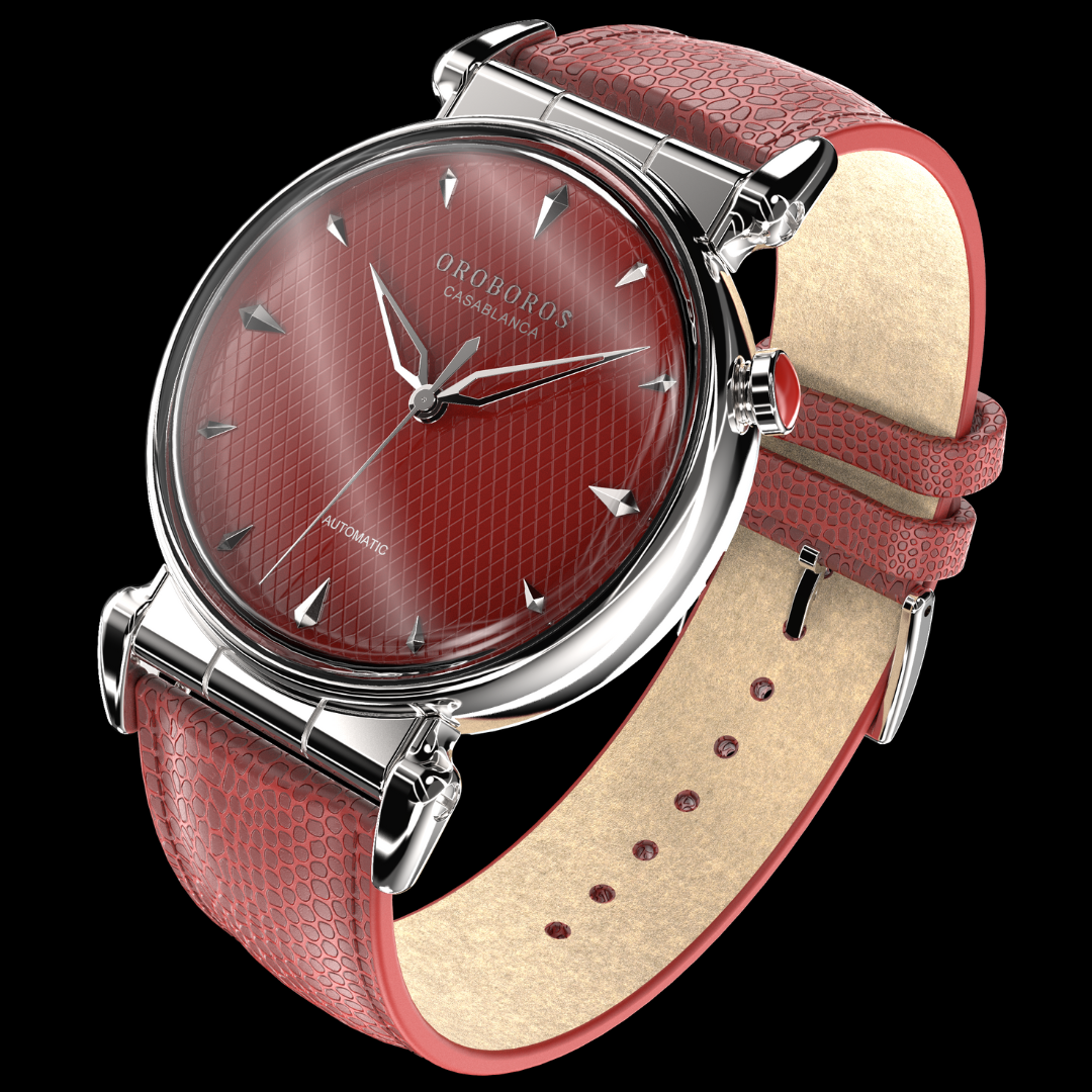 Casablanca is a stunning timepiece, designed for those who appreciate the finer things in life. With its modern and unique case design, a double domed sapphire crystal, and a sleek snakeskin patterned dial; this watch is sure to turn heads and make a bold statement on your wrist. Casablanca is offered in chic black or white for a more subtle look, or for the bold, a vibrant sunray red. Crafted from premium materials, Casablanca features a premium leather band which offers comfort, durability and style, making it the perfect accessory for any outfit. So, wherever your travels take you, this watch is a timeless tribute to the beauty and sophistication of the city of Casablanca.