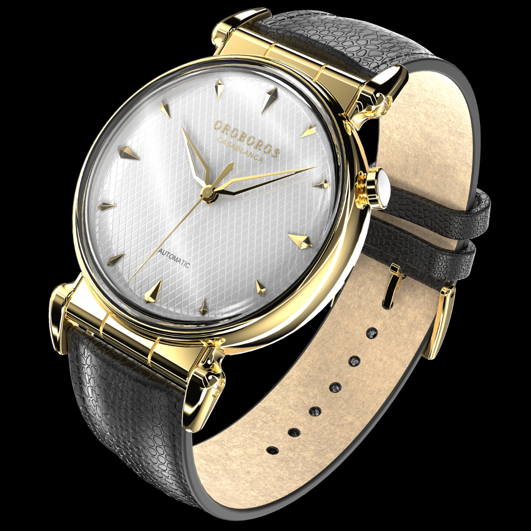 Casablanca is a stunning timepiece, designed for those who appreciate the finer things in life. With its modern and unique case design, a double domed sapphire crystal, and a sleek snakeskin patterned dial; this watch is sure to turn heads and make a bold statement on your wrist. Casablanca is offered in chic black or white for a more subtle look, or for the bold, a vibrant sunray red. Crafted from premium materials, Casablanca features a premium leather band which offers comfort, durability and style, making it the perfect accessory for any outfit. So, wherever your travels take you, this watch is a timeless tribute to the beauty and sophistication of the city of Casablanca.