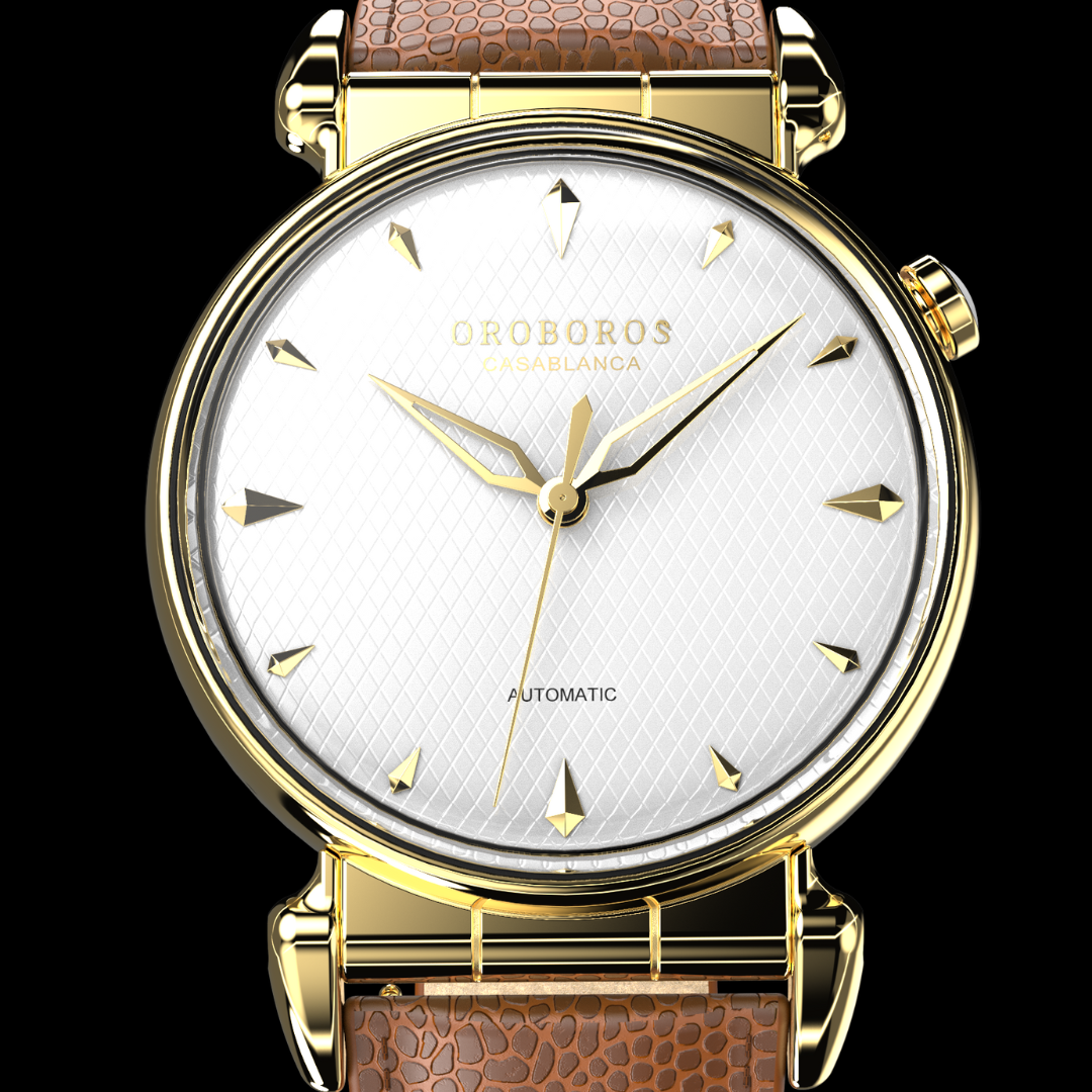 Casablanca is a stunning timepiece, designed for those who appreciate the finer things in life. With its modern and unique case design, a double domed sapphire crystal, and a sleek snakeskin patterned dial; this watch is sure to turn heads and make a bold statement on your wrist. Casablanca is offered in chic black or white for a more subtle look, or for the bold, a vibrant sunray red. Crafted from premium materials, Casablanca features a premium leather band which offers comfort, durability and style, making it the perfect accessory for any outfit. So, wherever your travels take you, this watch is a timeless tribute to the beauty and sophistication of the city of Casablanca.