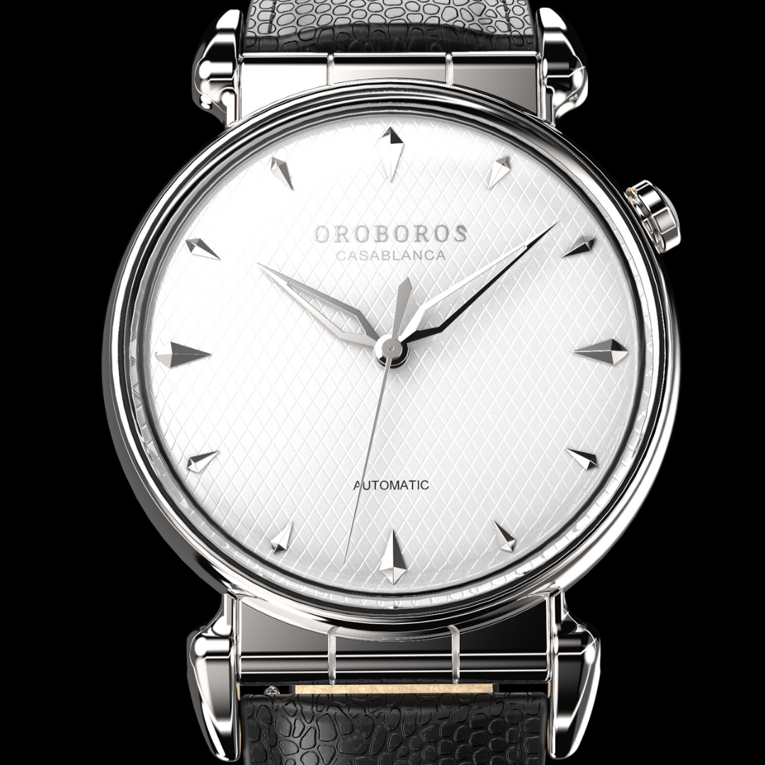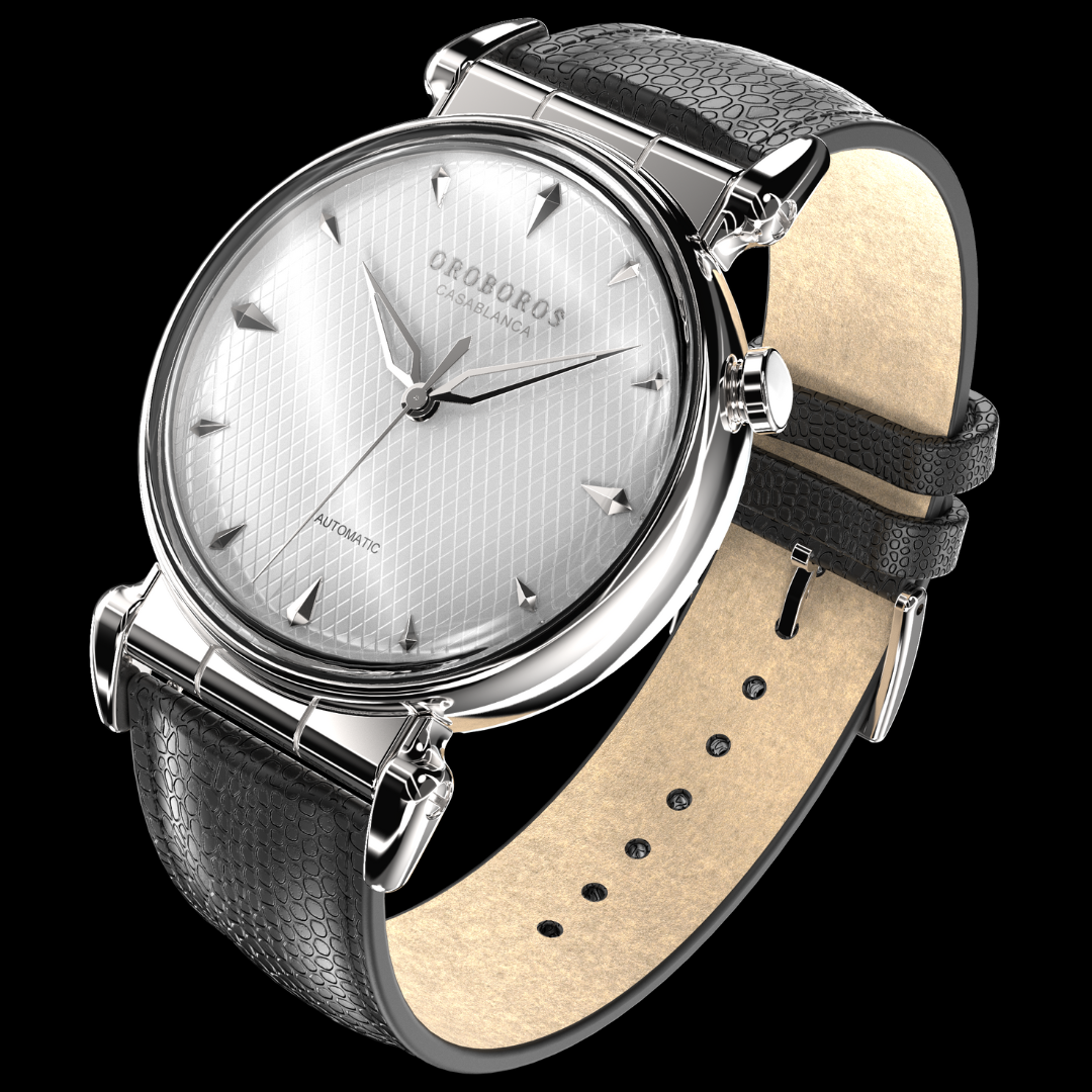 Casablanca is a stunning timepiece, designed for those who appreciate the finer things in life. With its modern and unique case design, a double domed sapphire crystal, and a sleek snakeskin patterned dial; this watch is sure to turn heads and make a bold statement on your wrist. Casablanca is offered in chic black or white for a more subtle look, or for the bold, a vibrant sunray red. Crafted from premium materials, Casablanca features a premium leather band which offers comfort, durability and style, making it the perfect accessory for any outfit. So, wherever your travels take you, this watch is a timeless tribute to the beauty and sophistication of the city of Casablanca.