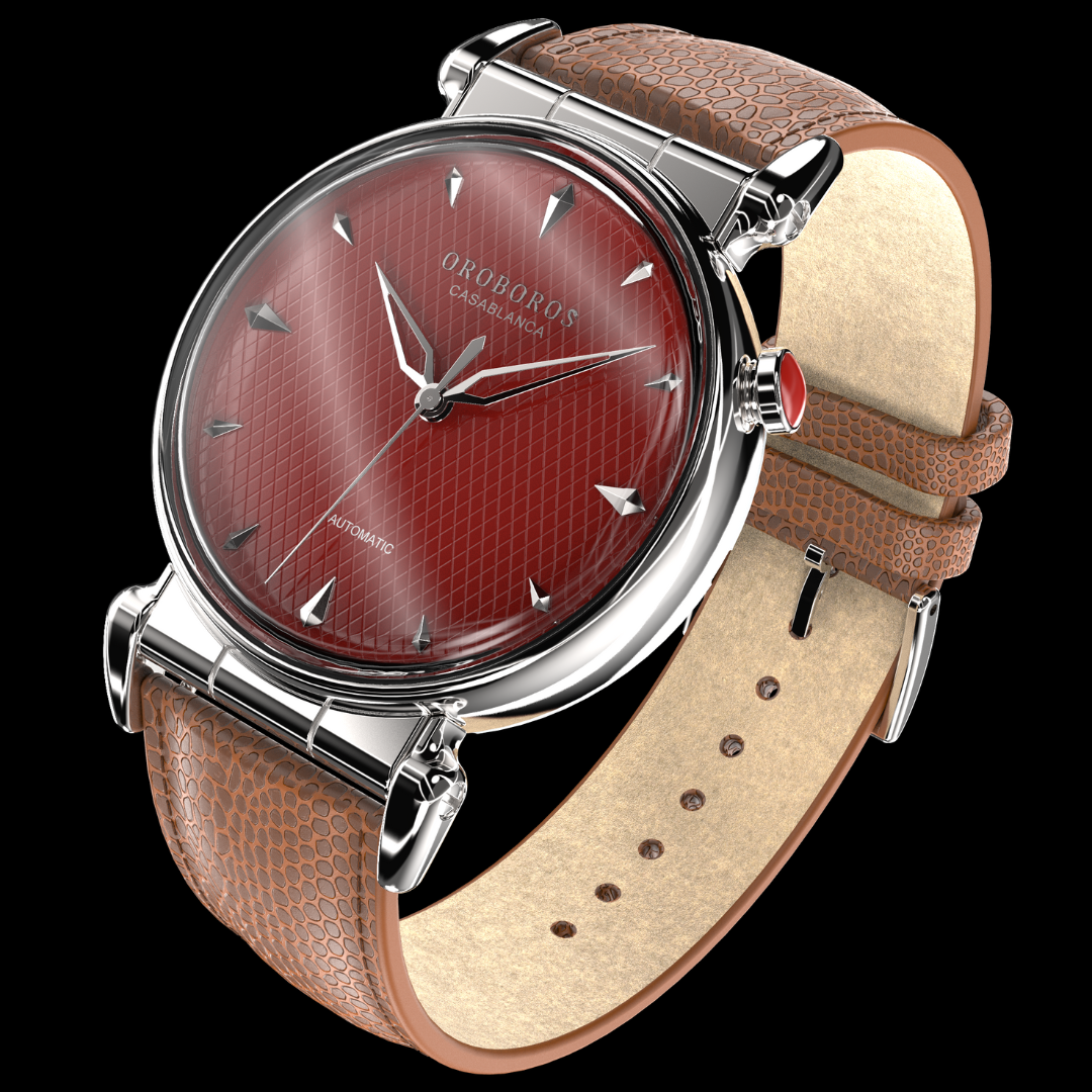 Casablanca is a stunning timepiece, designed for those who appreciate the finer things in life. With its modern and unique case design, a double domed sapphire crystal, and a sleek snakeskin patterned dial; this watch is sure to turn heads and make a bold statement on your wrist. Casablanca is offered in chic black or white for a more subtle look, or for the bold, a vibrant sunray red. Crafted from premium materials, Casablanca features a premium leather band which offers comfort, durability and style, making it the perfect accessory for any outfit. So, wherever your travels take you, this watch is a timeless tribute to the beauty and sophistication of the city of Casablanca.