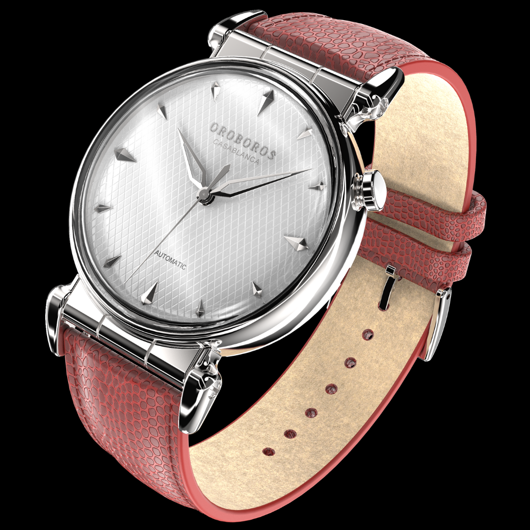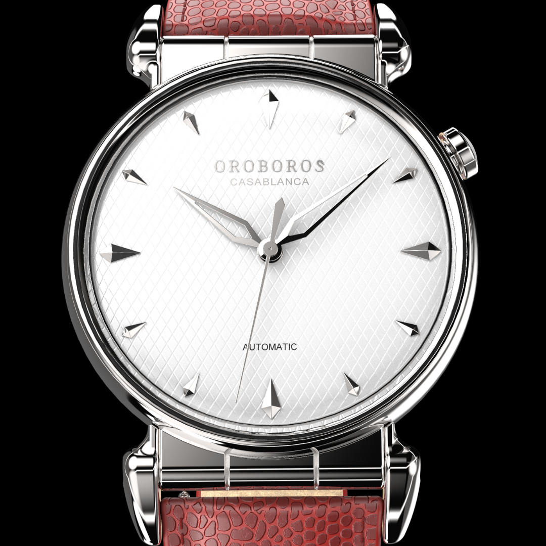 Casablanca is a stunning timepiece, designed for those who appreciate the finer things in life. With its modern and unique case design, a double domed sapphire crystal, and a sleek snakeskin patterned dial; this watch is sure to turn heads and make a bold statement on your wrist. Casablanca is offered in chic black or white for a more subtle look, or for the bold, a vibrant sunray red. Crafted from premium materials, Casablanca features a premium leather band which offers comfort, durability and style, making it the perfect accessory for any outfit. So, wherever your travels take you, this watch is a timeless tribute to the beauty and sophistication of the city of Casablanca.